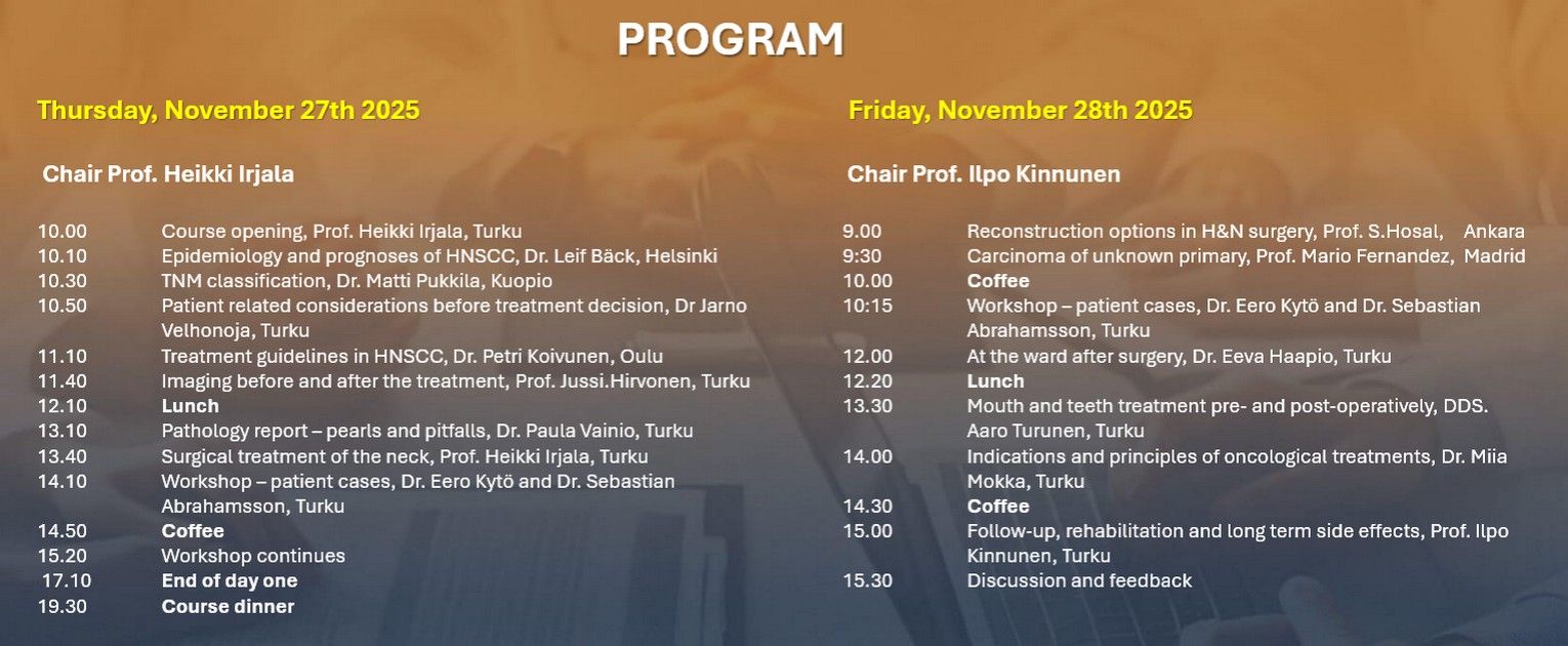 This course is down-to-earth course for the residents in Otorhinolaryngology – Head and Neck Surgery. The purpose is to go through the basic principles of diagnostics, treatment modalities, follow-up and rehabilitation of H&N cancer patients.