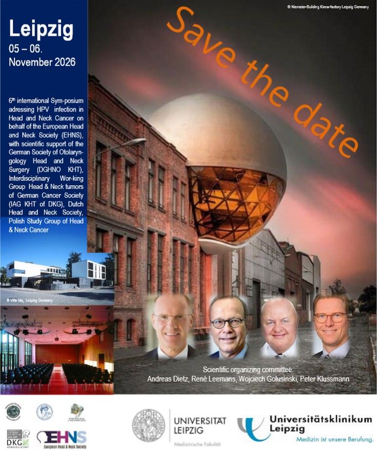 The 6th international Symposium on HPV infection in Head and Neck Cancer will be held in Leipzig from 5 until 6 November 2026 on behalf of the European Head and Neck Society (EHNS), with the scientific support of the